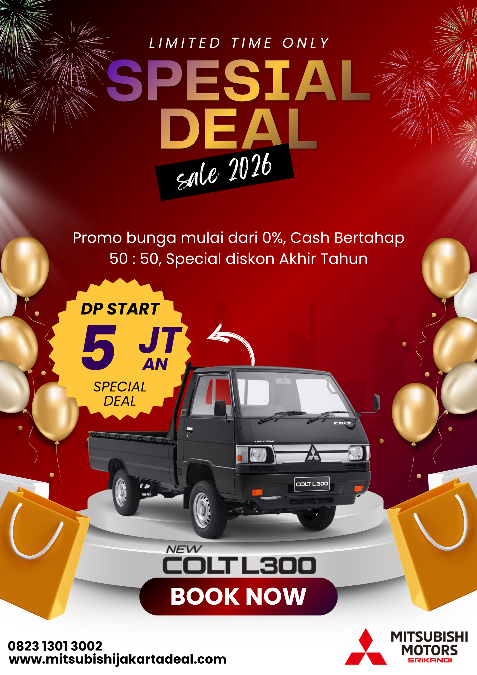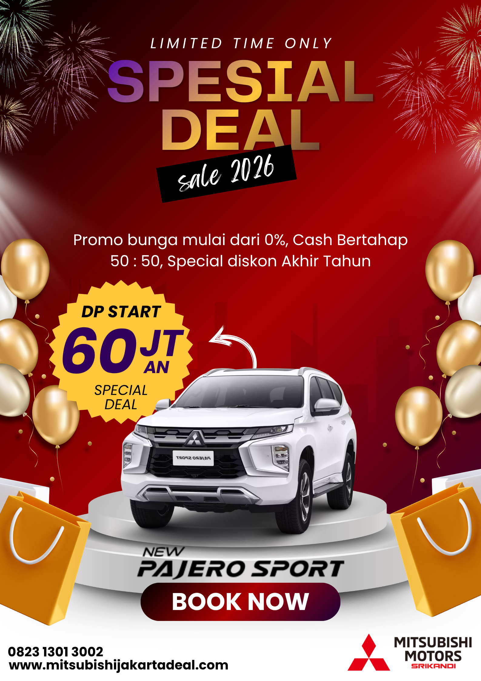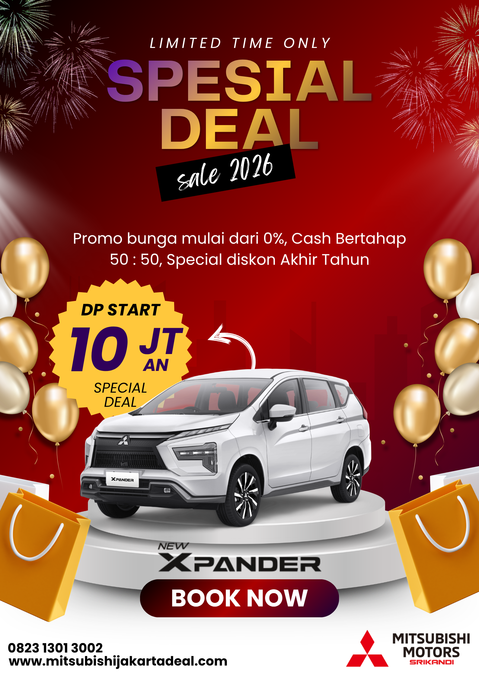 Bersama Mitsubishi, mari wujudkan pengalaman berkendara yang tangguh, efisien, dan nyaman. Saya siap membantu Anda kapan saja.